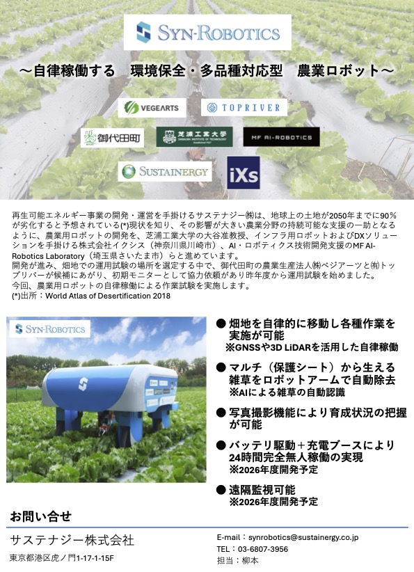 御代田町にて次世代型農業ロボット「SYN-ROBOTICS(シンロボ)」の公開試験を実施しました